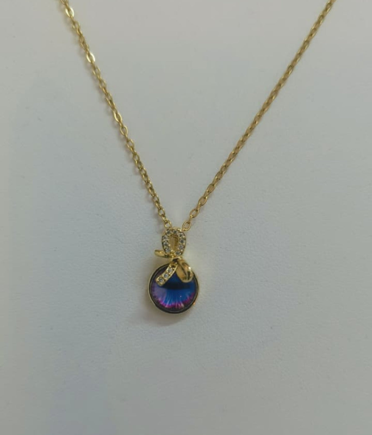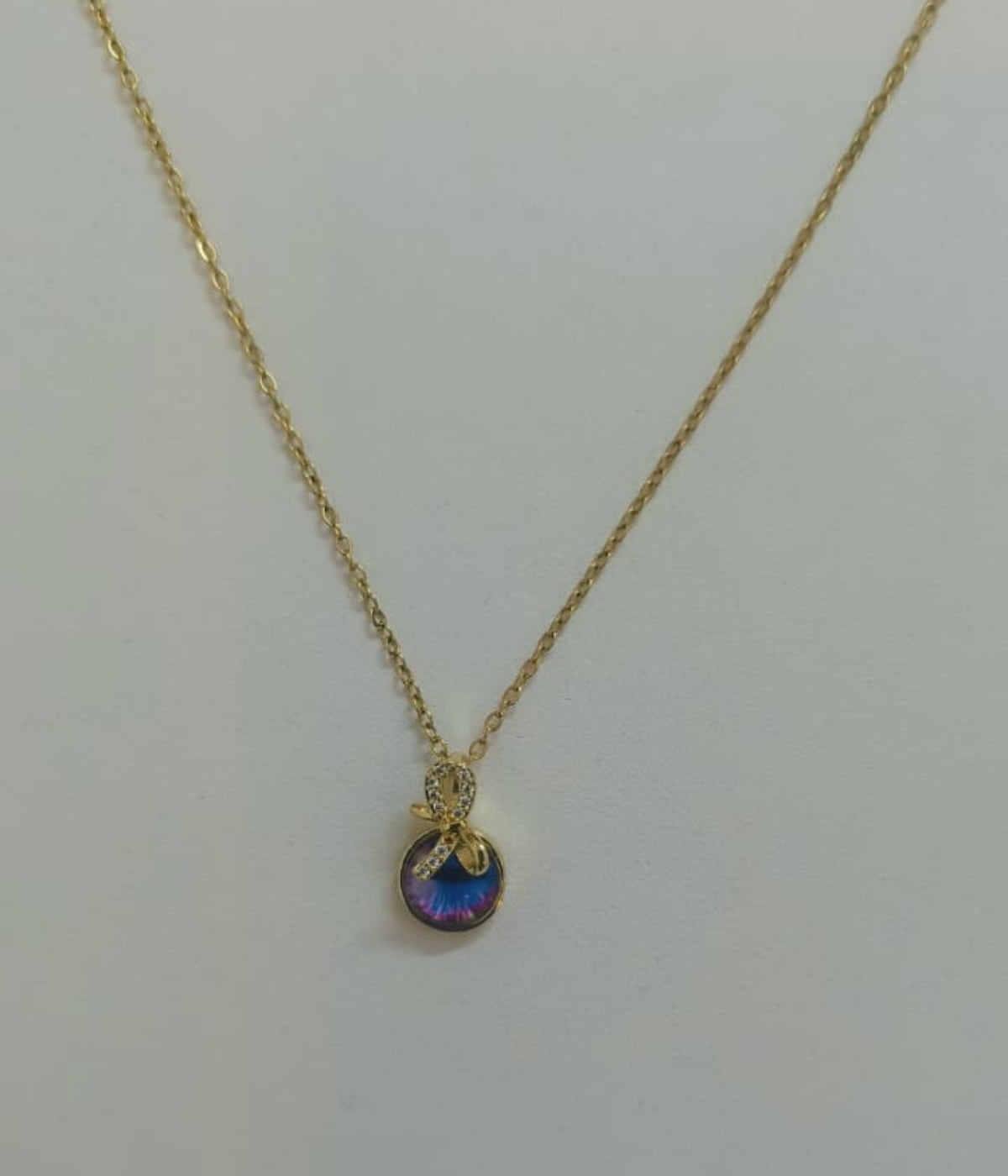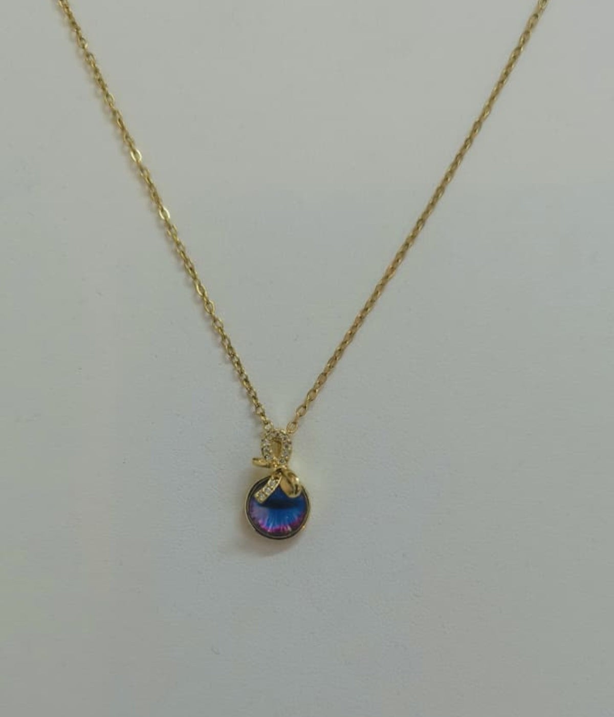 Purple Swarovski Crystal Bow Gold Plated Pendant